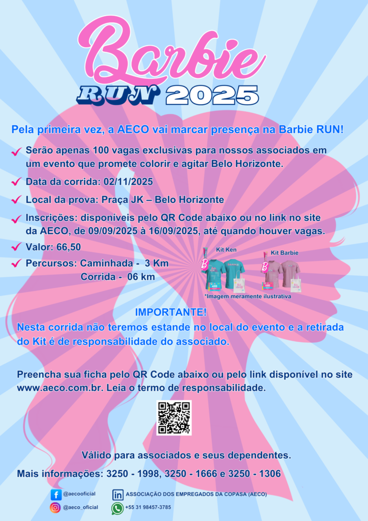 View Larger Image Aberta as inscrições da Barbie Run 2025 Venha correr com a AECO! Termo – Corrida de Barbie RUN 2025 AUTORIZAÇÃO-PARA-DESCONTO Tabela de Tamanhos de Camisa